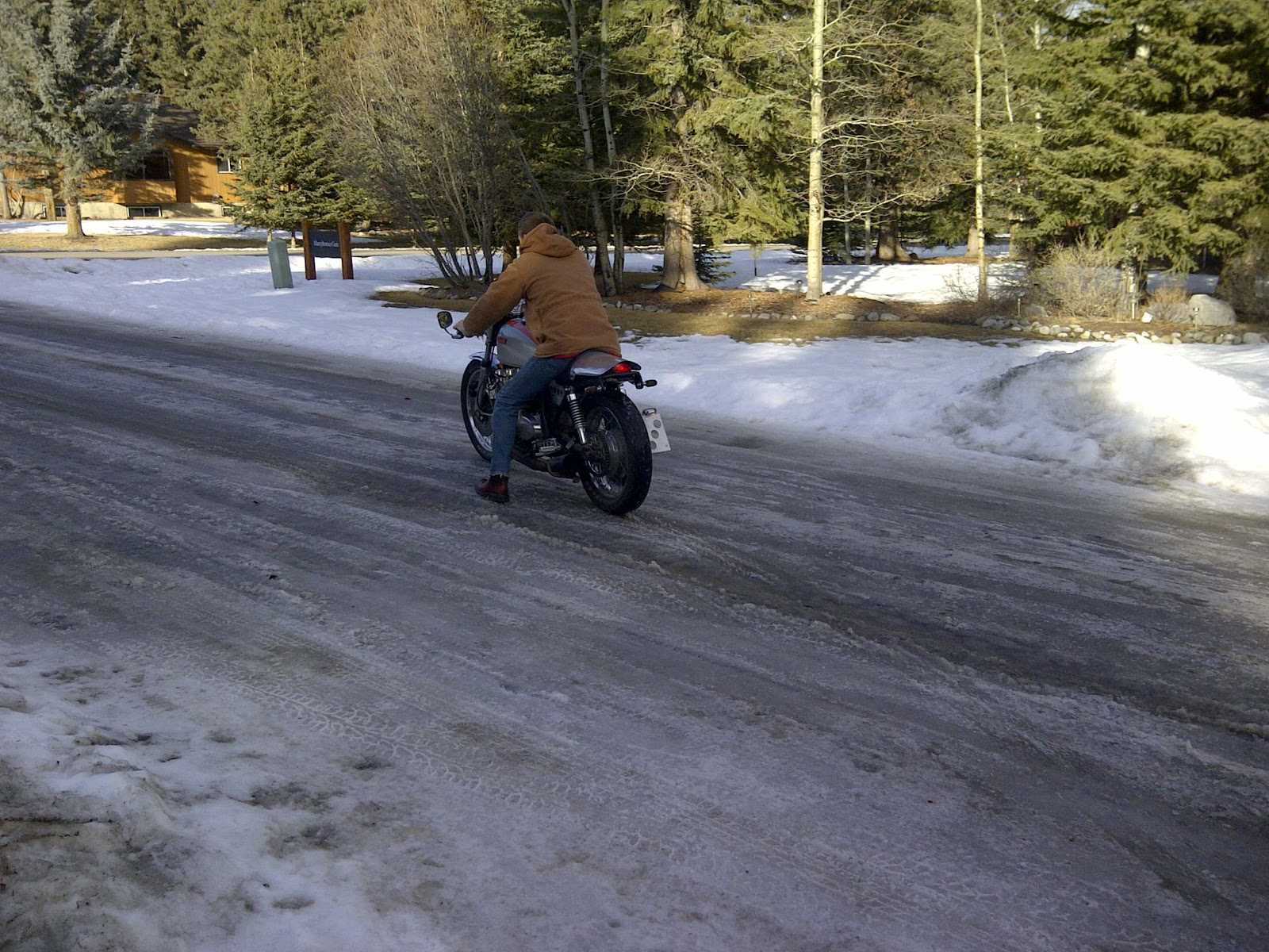 Lets blow the dust off this blog for a moment. The winter is passing, taking a piss as it were, and the days are markedly longer! No, it's not time to transition back to the bike for commuting, but who's to tell me I can't get my bike fix in the meantime? I was able to run up and down the street a couple weeks ago while a chinook took us into it's warm embrace, melting enough road surface to open up the KZ even for a brief couple of minutes. I just had to know what my winter labours had concieved, after mating a new electronic ignition in place of the old points, condencers etc.